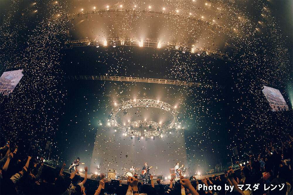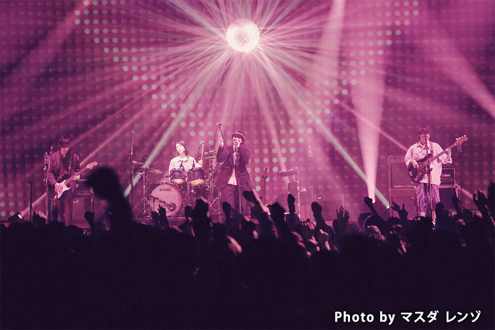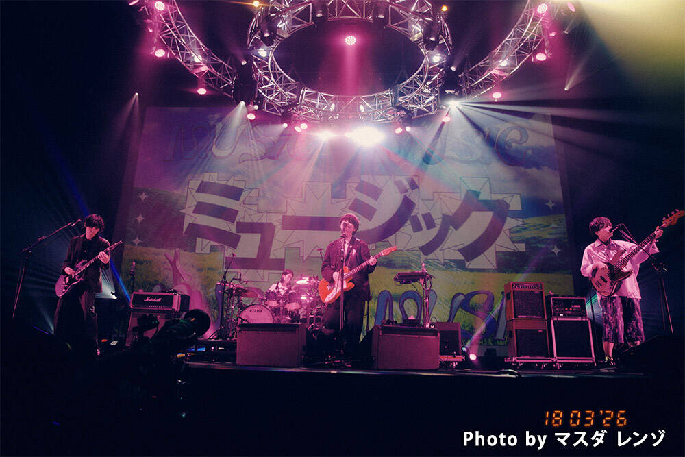 ムツムロ アキラ(Vo&Gt)、でらし(Ba&Cho)、木島(Dr)、ukicaster(Gt)による大阪出身の4人組ロックバンド・ハンブレッダーズが、3月18日(水)に東京ガーデンシアターで「ワンマンツアー “2026年 銀河の旅”」を開催。
